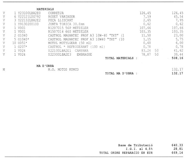 Revision de los 30000km. Por cierto que si os fijais hay el cambio de ruedas a las metzeler actuales, hace actualmente 5 meses (del 30-11-2013). Y la correa tambien... vaya desastre!