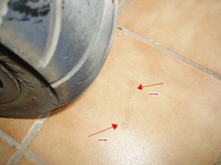 Tras un mes mas de uso y observando periodicamente todo sigue normal, despues de un fin de semana de mal tiempo y mi gordi sin salir de su parking veo de nuevo la mancha en el neumático trasero, la he mirado todos los dias y estaba bien, y tras tres dias de no usarla ahí vuelve a esta.