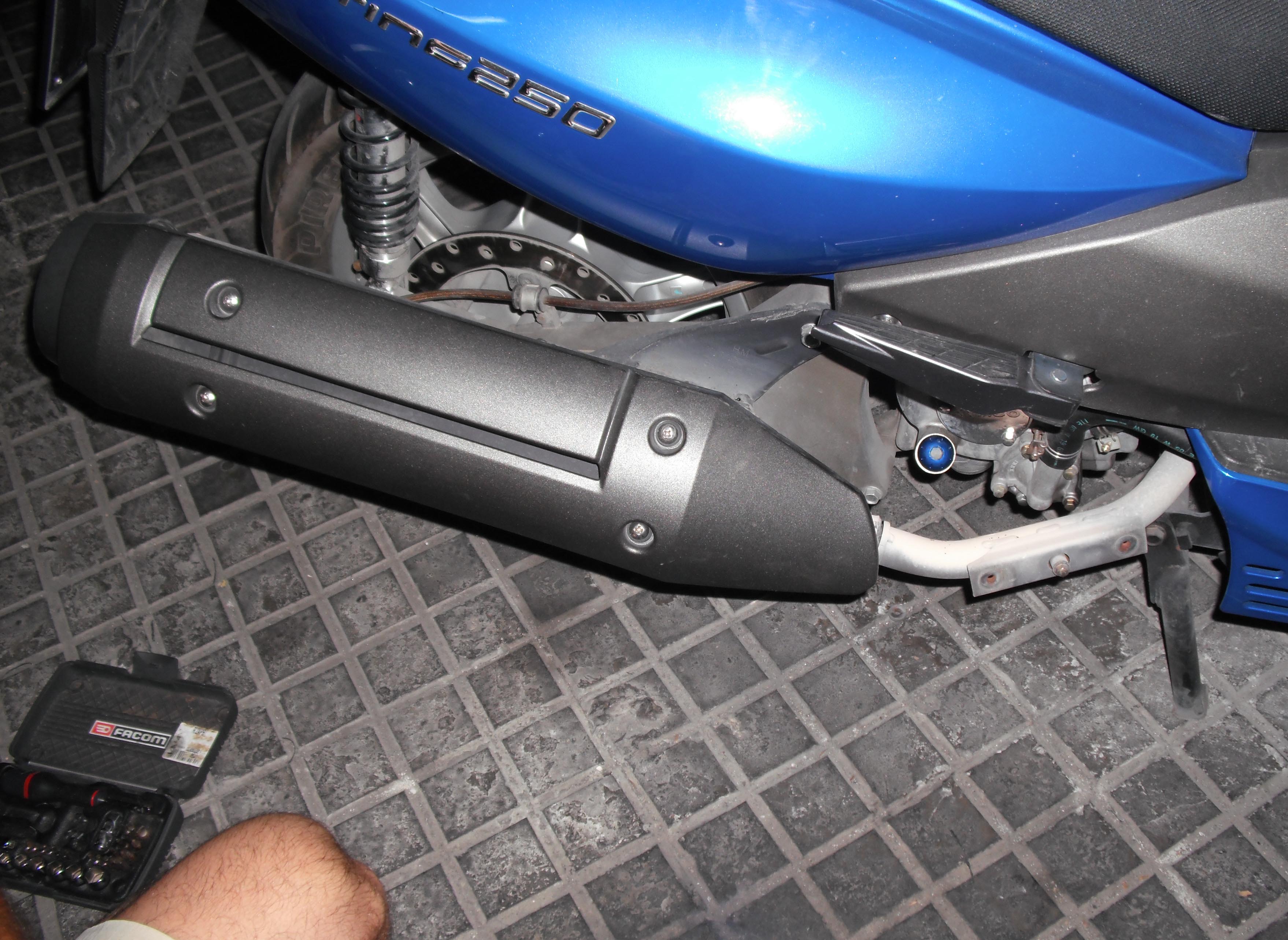 Lo primero que hacemos es desmontar los protectores (mucho ojo con las arandelas y los separadores de goma, o se derretira el escape)