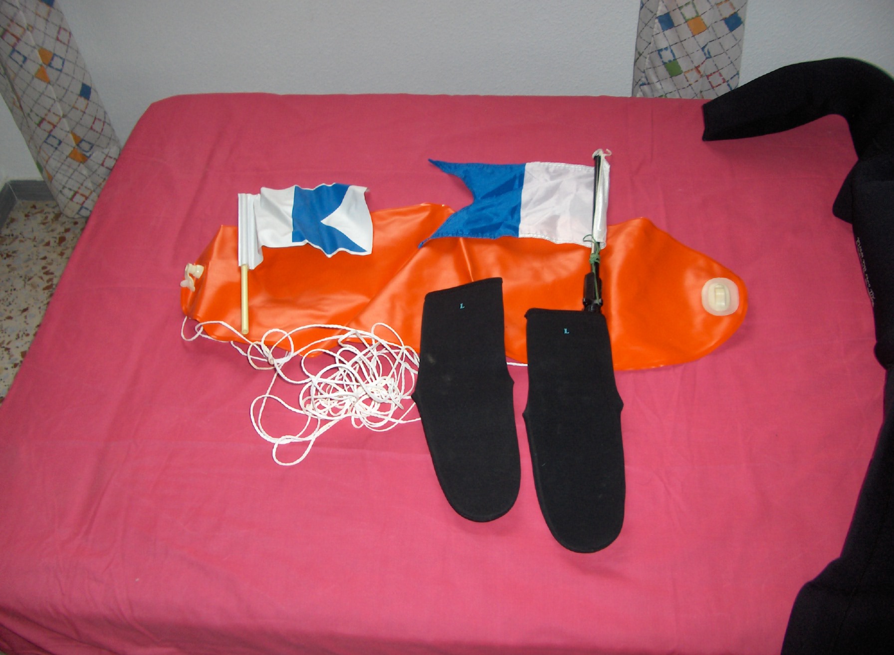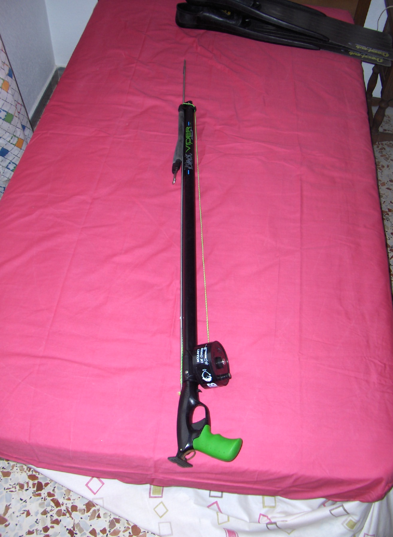 Fusil de pesca submarina Sporasub Black Viper de 90 con carrete, es una pasada, tambien escarpines de la talla L  y boya de señalización, todo el conjunto por 95€