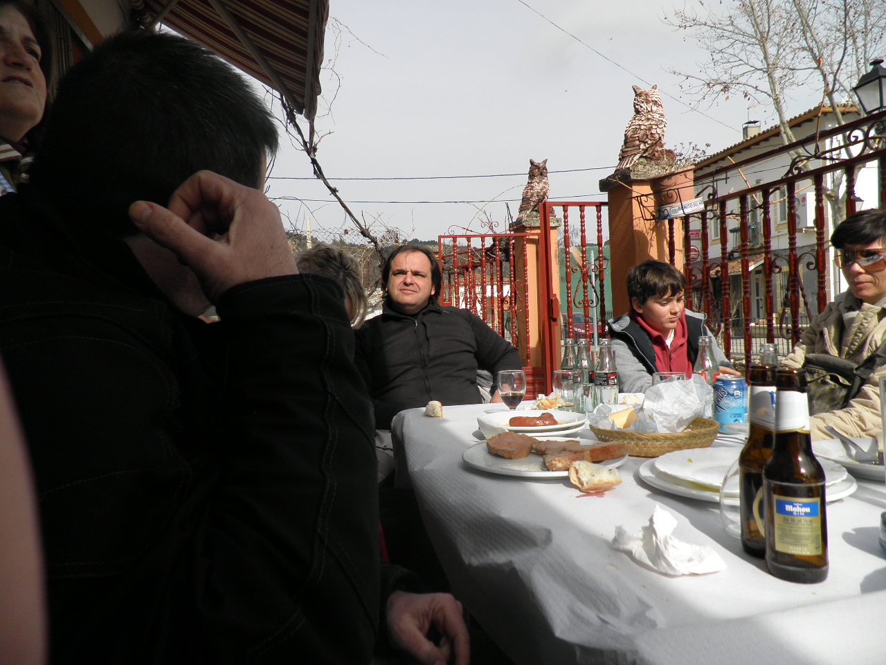 Otro puñadito de fotos para que tengáis idea de lo que se cuece en una salidita de Sábado, eso sí, soltando 180€ pero nos comimos todo lo que tenía la buena mesonera. El paraje una maravilla, el olor a pueblo nos inundaba y la calma de la mañana sabadeña nos dio un disfrute que pocas veces puede tenerse, teníamos el tanga, bueno creo que había varios tangas colgados al fresco, justo enfrente de mesón que nos llenó las panzas.