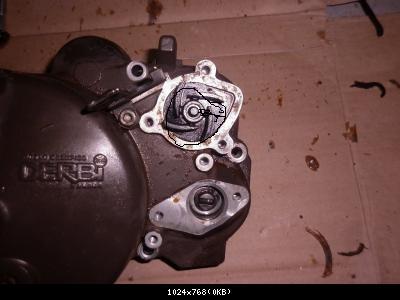 Ya que la tienes desmontada aparte de limpiar bien para poder ver si hay algo,donde esta la polea-aspas de plastico ahí hay un reten(que es por donde suelen perder) (te pongo una foto,te lo he remarcado)