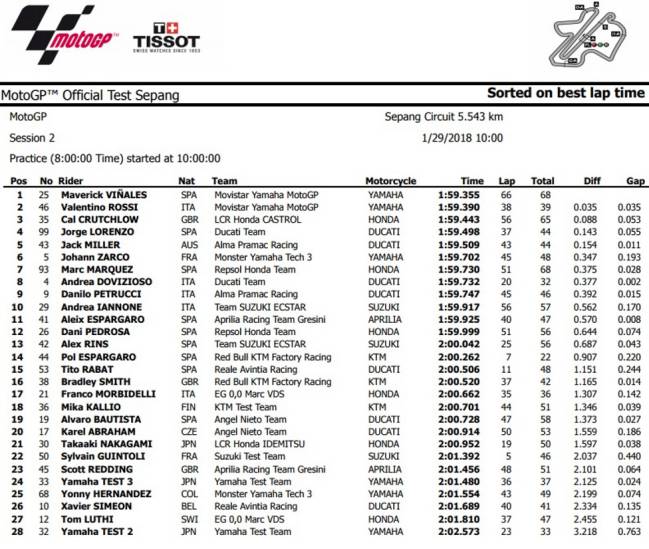 el segundo dia lo dominaron las yamahas, encabezado por maverick, esta es la clasificacion