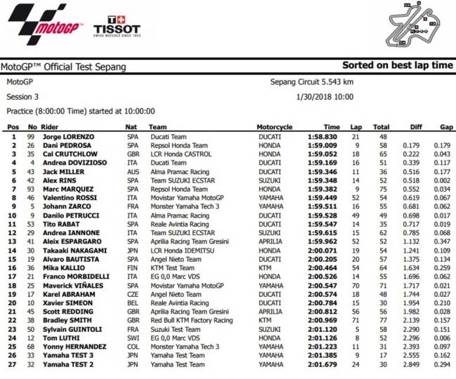 tras unos meses sin noticias de motos, han comenzado los test de pretemporada, el primero el de sepang que se celebraran los dias del 28 al 30 de enero.