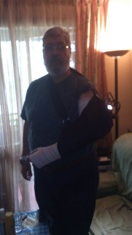 Angel, siento lo que te ha pasado. ya sabemos que a veces esos pequeños descuidos nos traen dolor de cabeza y en tu caso dolor de brazo.