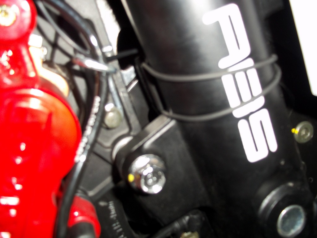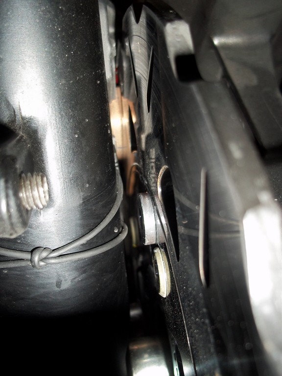 Bien, una vez pasado el lugar "idoneo" (o al menos a mi me lo parece) para colocar el sensor del velocimetro es justo en el hueco que queda a la altura de la pegatina de ABS, girandolo asta dejarlo enfrentado al disco de freno, justo por donde esta la parte metalica oscura, donde se ancla el disco de freno.