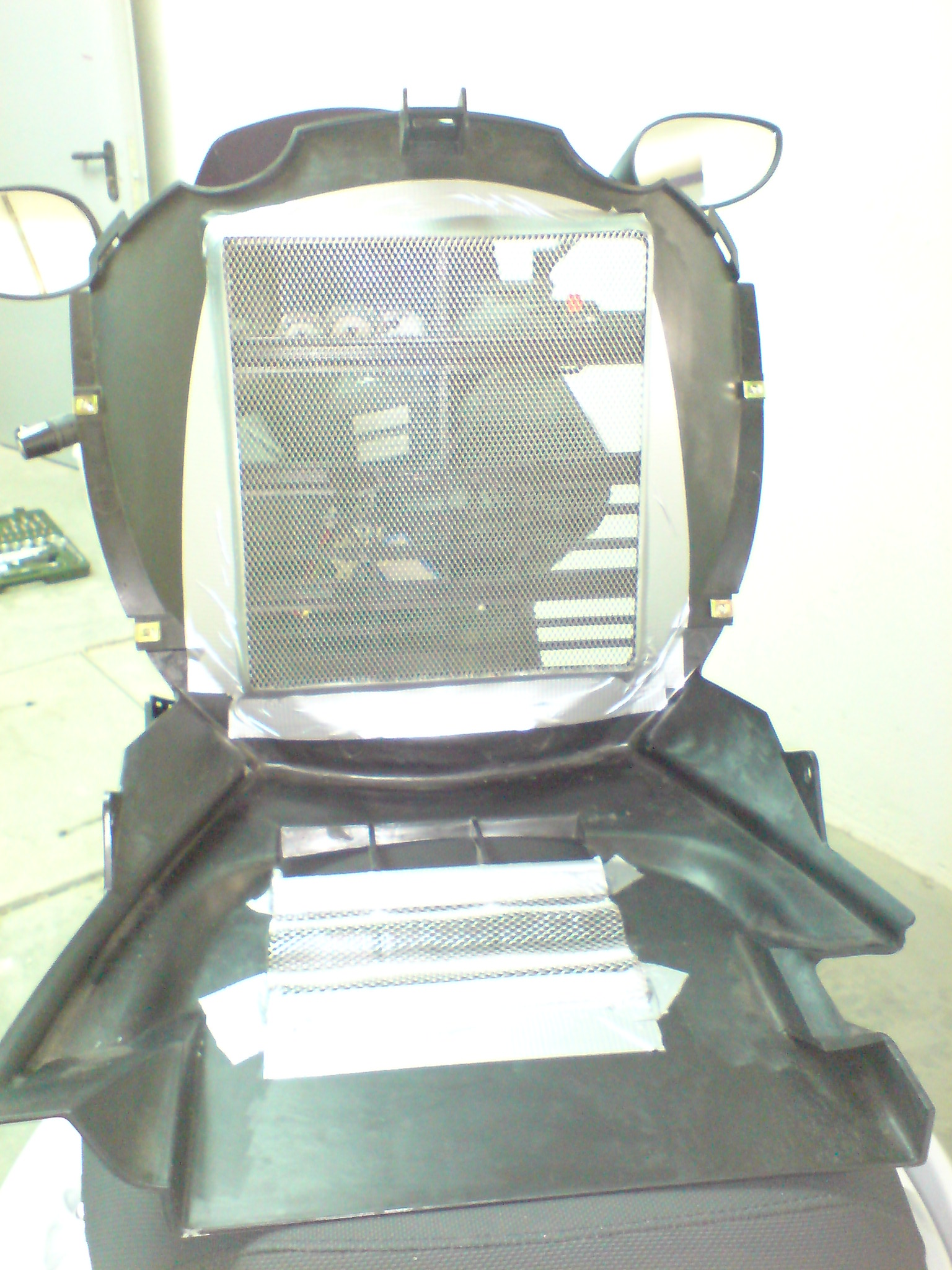 Hola, xciting72, el brico te ha quedado muy bien, es otra forma de proteger el radiador. La sujeción que yo puse, era una cinta de aluminio que se adhiere en cualquier superficie, lógicamente, esta, tiene que estar bien limpia. Felicidades.