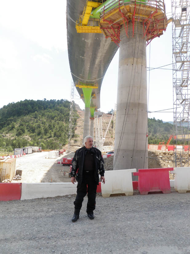 He salido de curvas hasta las orejas (¡¡Que bien me lo he pasao!!). Ya sin parar hasta empalmar con la carretera general, que estan haciendo un puente nuevo y paramos a su sombra sombra. Es una pasada de puente, como veis.