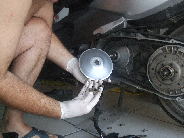 Finalmente he sacado la bujía que era la de origen y la he sustituido por una de iridium, he mirado los rodillos los cuales estaban bien y he lijado los ferodos del embrague.