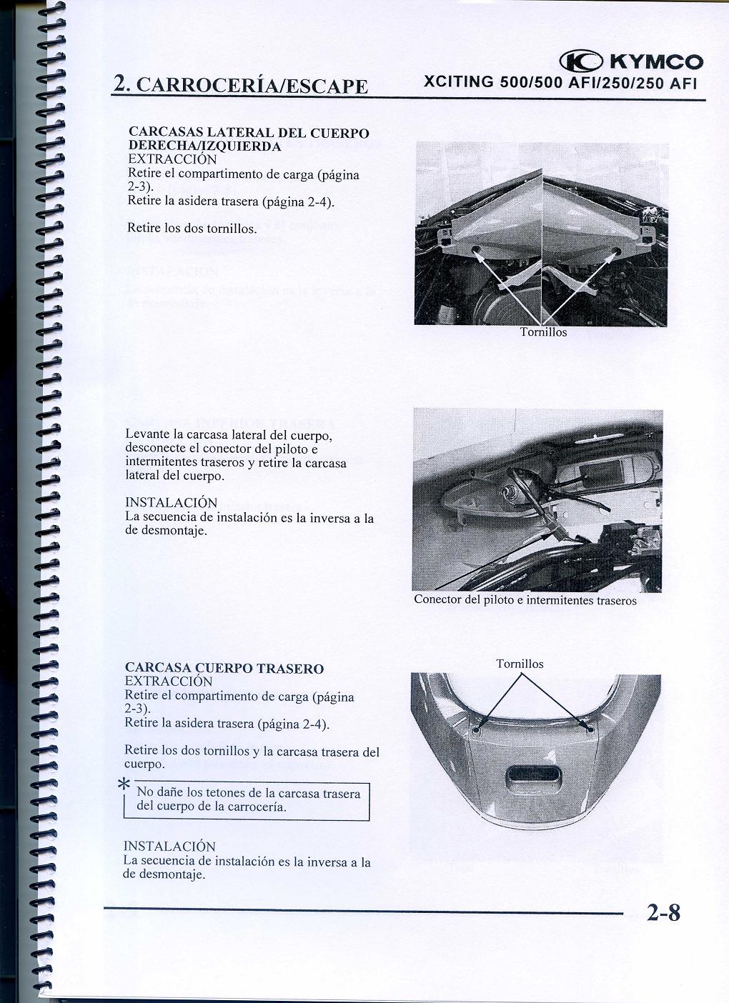 Para extraer las carcasas laterales, si nos vamos a la página 2-8 del Manual de Taller que se puede obtener de nuestra zona de descarga, podemos leer: