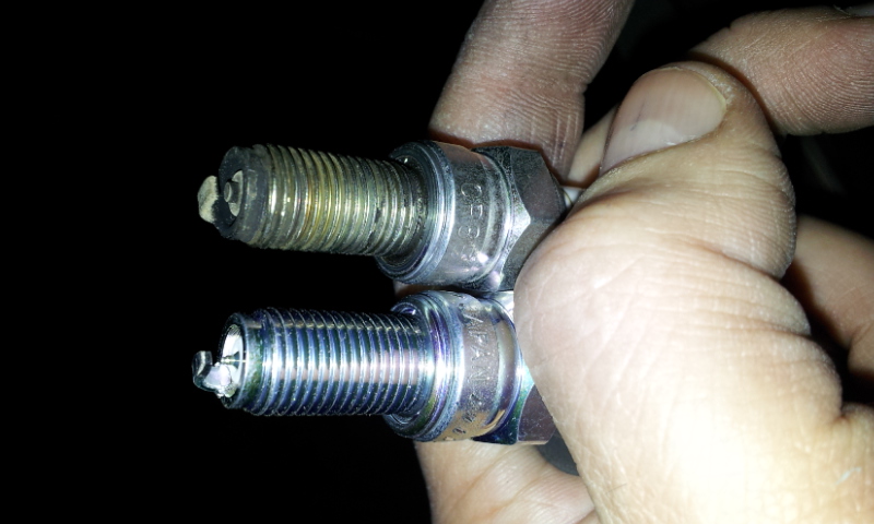 Bueno, pues combinando todos los factores de los que dispongo. Le he cambiado la batería por una de calleja. Y le voy alternando dos bujías CR7E que en un mes se me ponen de esta guisa: