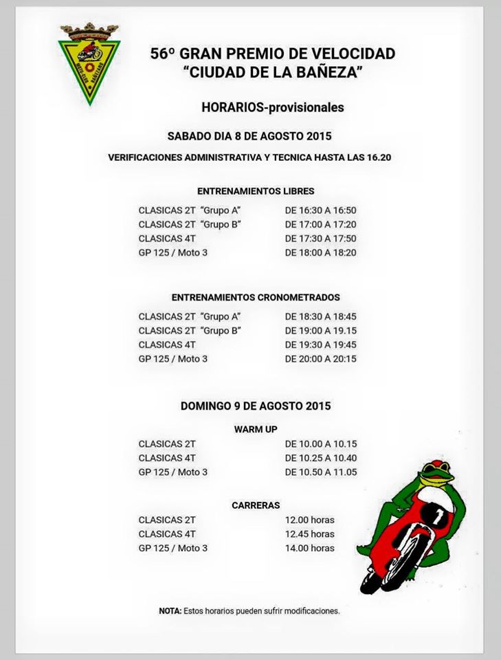 Los días 8 y 9 de agosto en La Bañeza (Leon) se disputará la 56 edición del GP de Velocidad La Bañeza.
