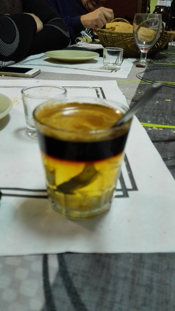 El bailongo (carajillo de ron quemado) para que la comida siente bien.