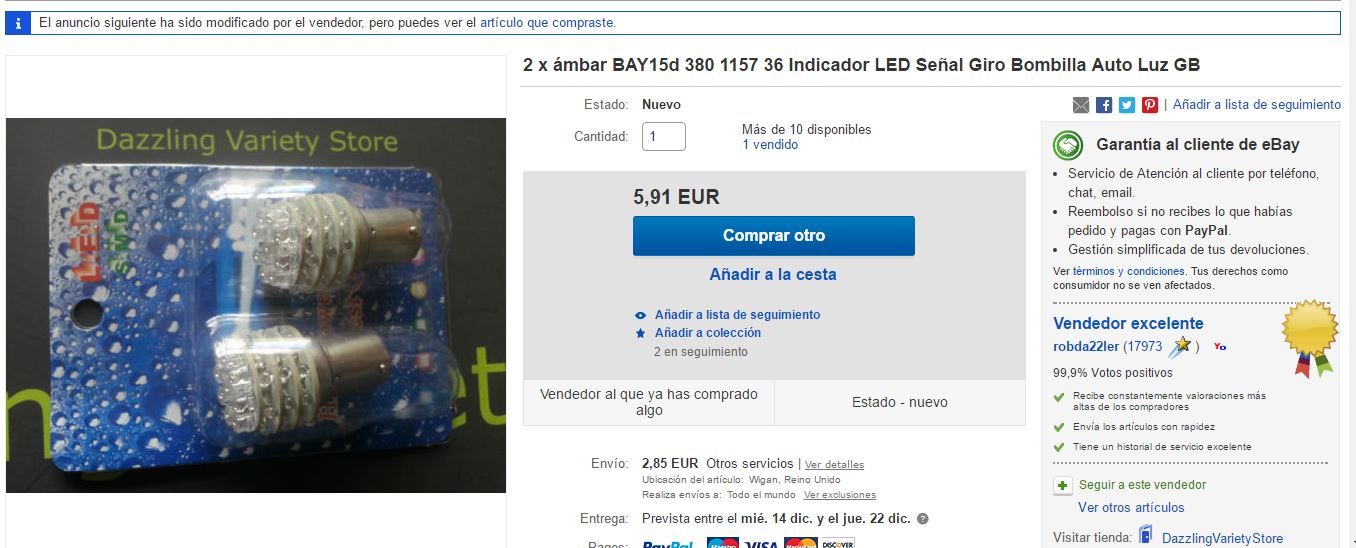 ... la idea es una sustitución sencilla, es decir, que coincida el casquillo, pero la bombilla sea Led. He estado leyendo que la gente tiene problemas para quitar las tulipas naranjas de los delanteros. Mi intuición me dicen que vienen soldadas de fábrica (plástico único; no a presión), por lo que habrá que extraerlas a base de fuerza bruta o con mucha maña cortando su perímetro. Aún no me decido por no estropear todo el intermitente, pero iré pensando a ver si hay una manera sencilla de sacarlas.