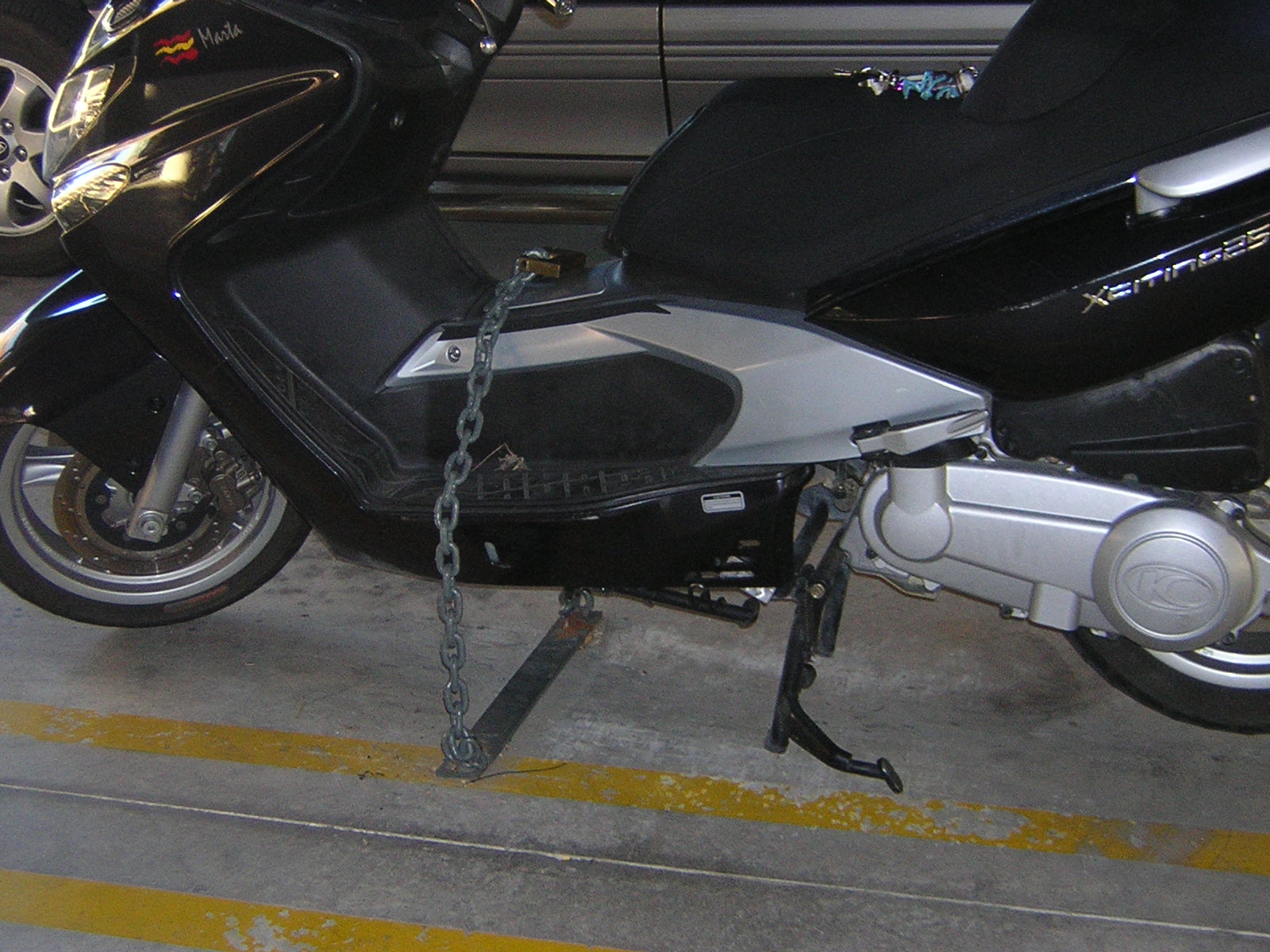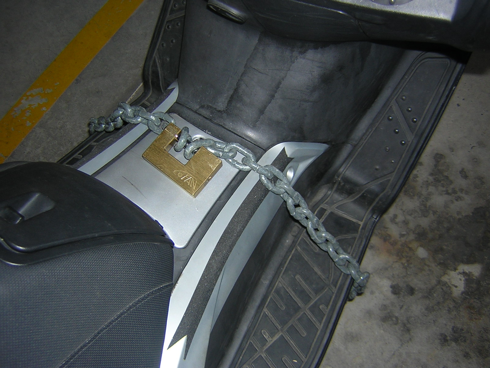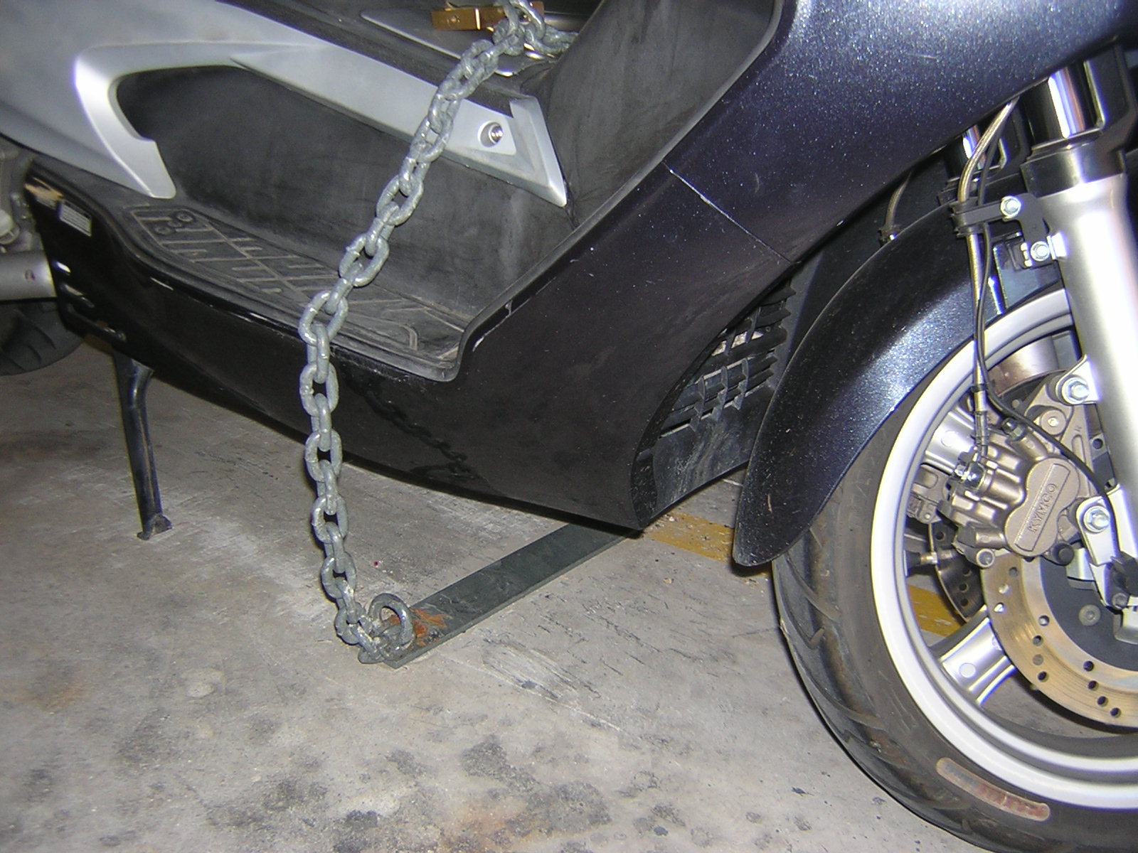 lo digo ya que tengo la moto en un garaje comun, y como medida he optado por comprar una peaso de cadena de acero y atarla a la columna del garaje, a la rueda trasera.