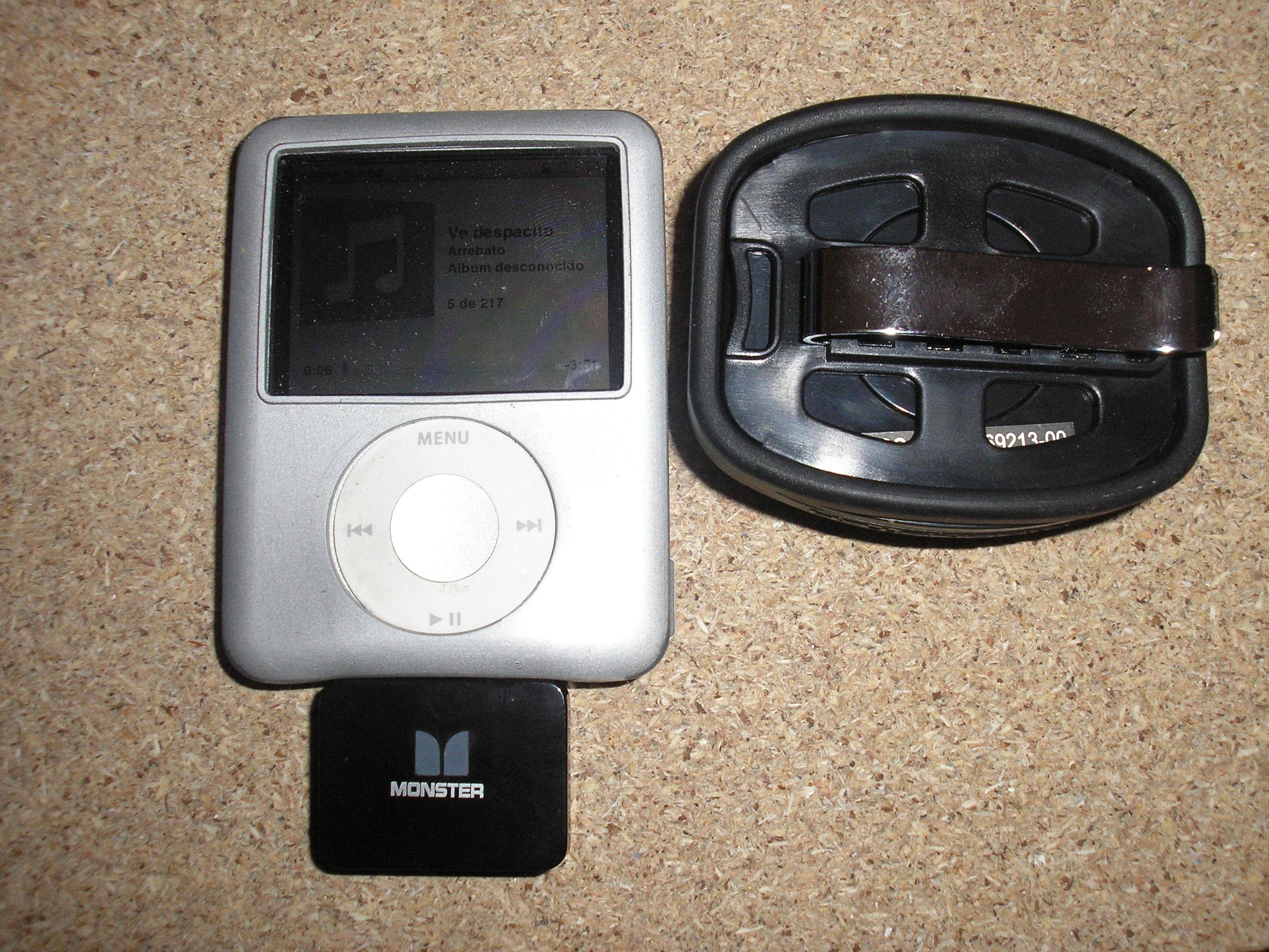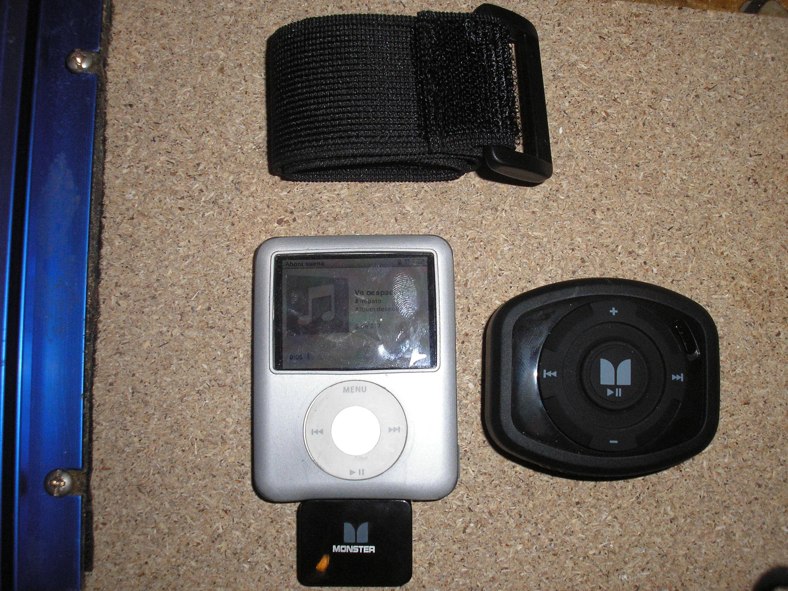 Se trata del mando adistancia Monster iezclick, valido para todos los ipod con conector dock (necesario para insertar el receptor, que es la "pastilla" que se ve conectada en la parte baja del ipod). Las ventajas que le veo es que no se trata de un sistema por infrarrojos, sino por ondas electromagneticas, con lo que no es necesario una confrontación entre el mando y el ipod. En mi caso el mando se encuentra en el manillar y el ipod fijado con velcro en la guantera portaobjetos que está en la punta del sillón. También lo he probado en la que tiene cerradura y en ninguno de los casos hay problemas de recepción.