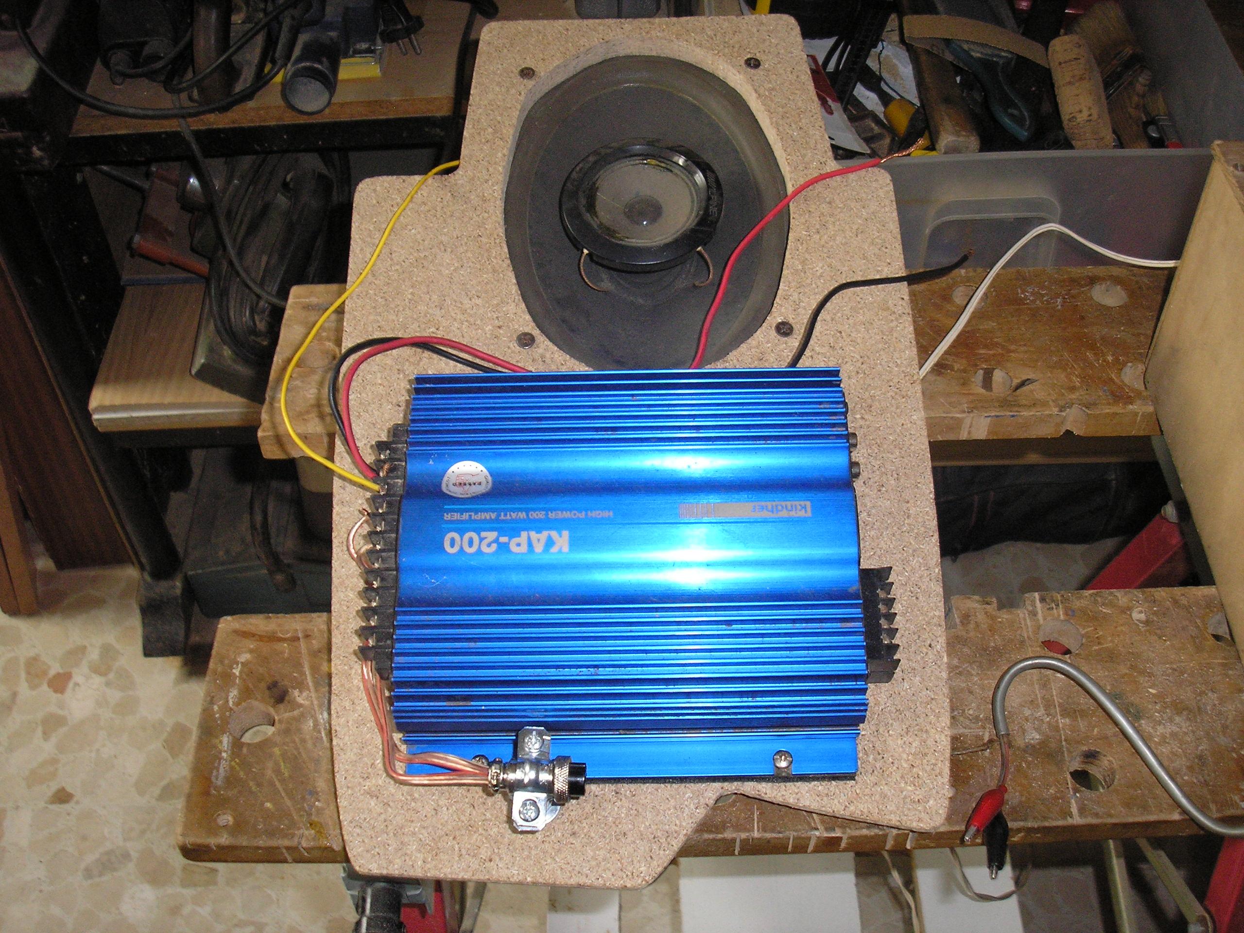 Todo esto está en fase de mejora, quiero suprimir el altavoz que está en la base y utilizar toda la superficie para poner un amplificador más potente, poner unos twitter en el "salpicadero", forrar la base de aglomerado con fieltro etc etc