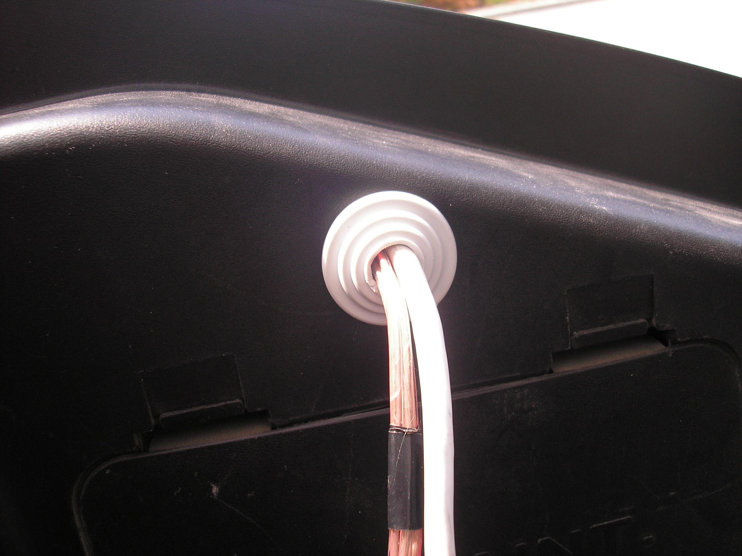 Al agujero que está en el lateral de "huevo" por el que pasan los cables, le puse un tapón de los utilizados en las cajas de registro. Los hay negros pero no lo tenían donde fuí a comprarlo, y para no andar mareando la perdiz.....