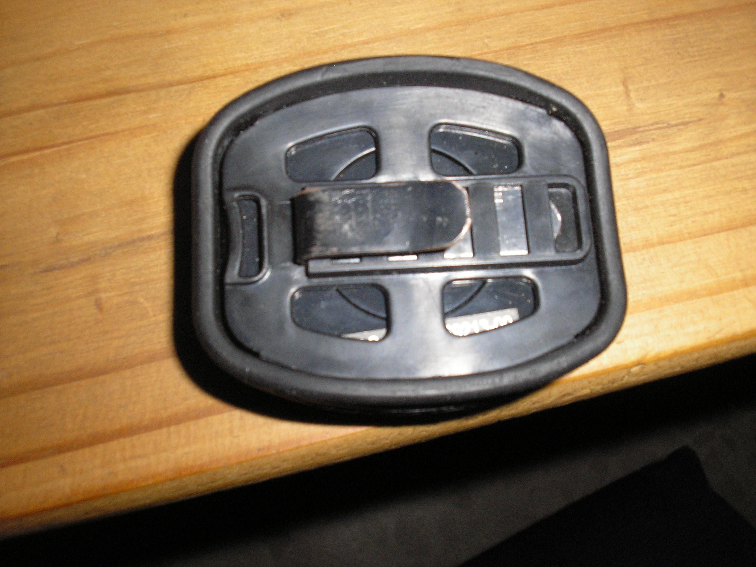 Este mando es impermeable y tiene unos botones lo suficientemente grandes como para poder pulsarlos con los guantes puestos. Para fijarlo al manillar, hice una pequeña ranura en la tapa superior y por ella introduzco la pinza metálica que lleva este mando en el reverso (foto 2). Una vez quito el mando, tapo la ranurita con un taponcito de caucho que hice, que pasa prácticamente desapercibido.