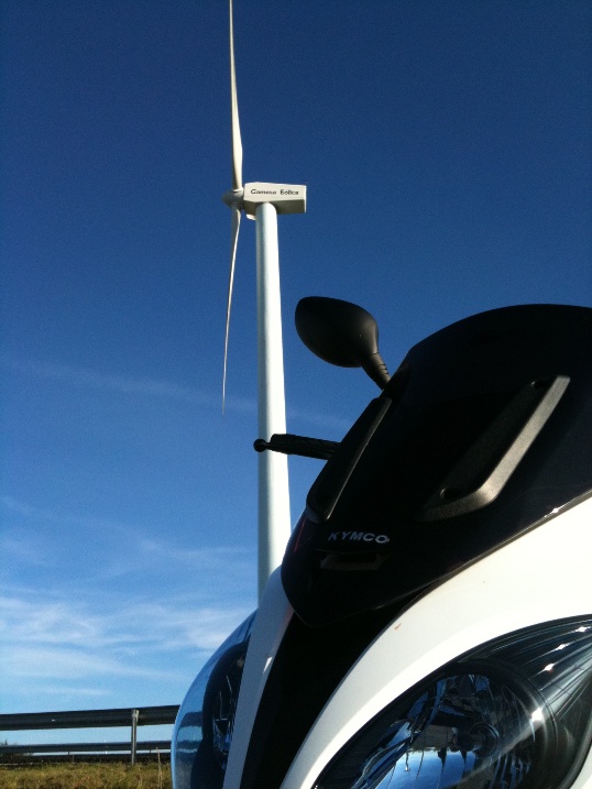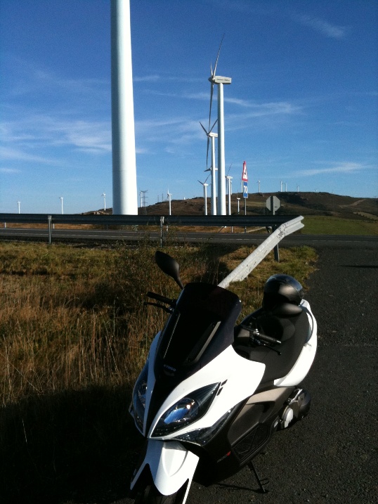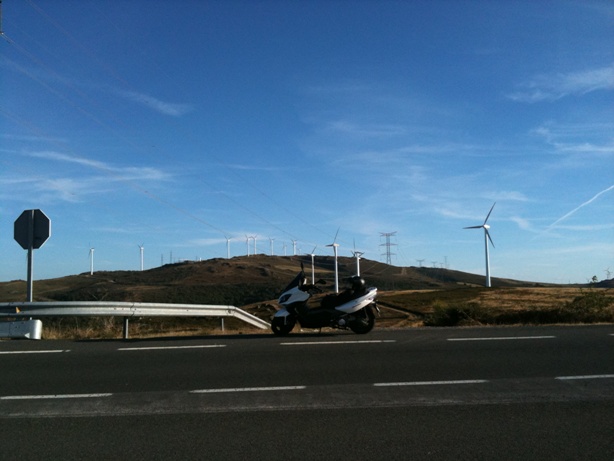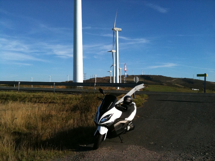 el otro día, de ruta por el Alto del Candán, entre Silleda y Pontevedra, se me ocurrió parar en un parque eólico para sacarle unas fotos "ecológicas" a la gordi (por cierto, que esta carretera tiene unas curvas preciosas).
