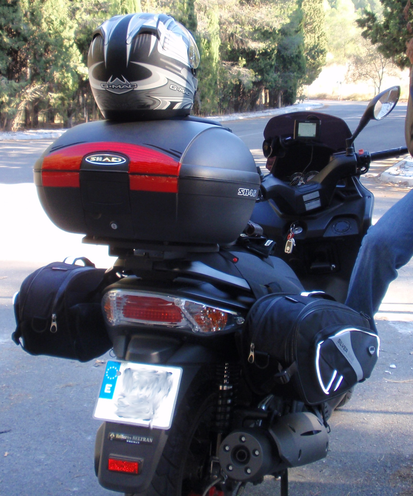 Bueno las alforjas son unas givi,cuesta 89 euros y quedan muy bien tanto si las pones como eslogico encima del asiento como si las pones encima del baul.