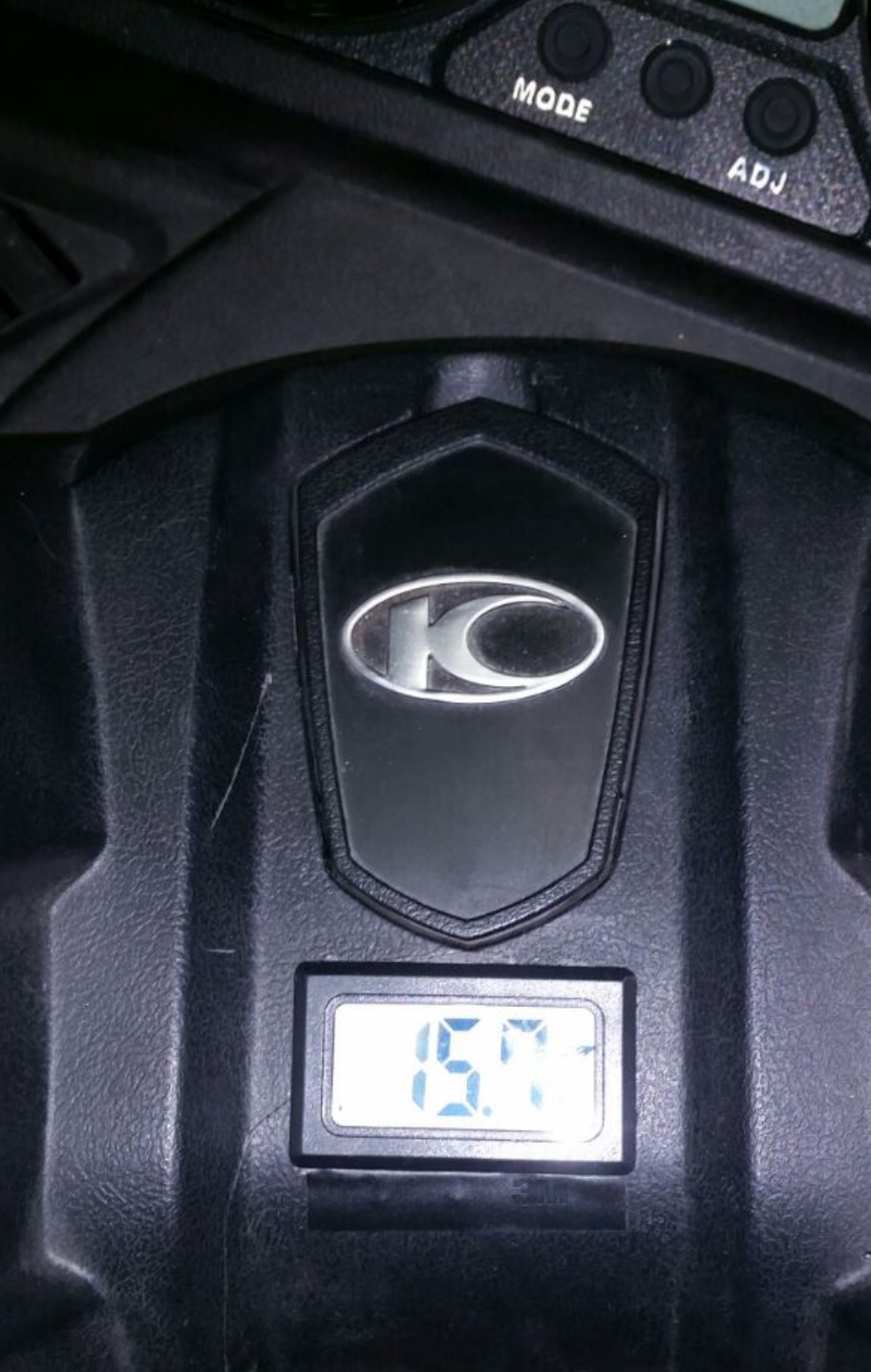 Aunque ponga Amperimetro, es un voltimetro, esta pensado para montar en Harleys, por lo que es estanco total y funciona de cine, aunque donde lo he montado se ve bien, tenia que haber hecho caso a mi instinto y montarlo debajo el cuadro, justo en medio.