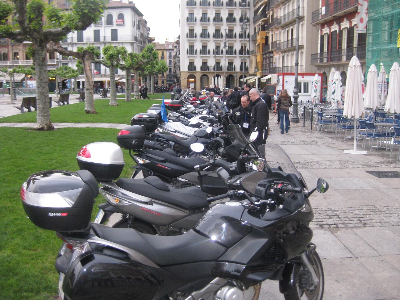 Las motos estacionadas en la peatonal Plaza del Castillo.