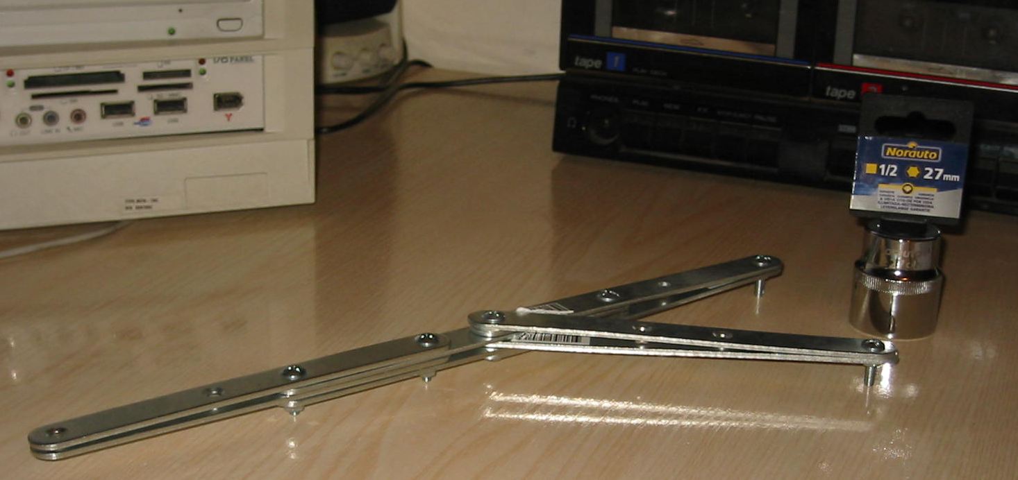 Zipotarri, si te refieres con lo de la parte movil a la mas corta, no te lo aconsejo. Al principio me hice una llave con solo pletinas y tambien se me doblaron. Mejor utiliza la barra del sargento como la parte fija (la mas larga) para poder apoyarlo en el suelo, y las pletinas, dos unidas para que hagan mas fuerza, como parte movil.