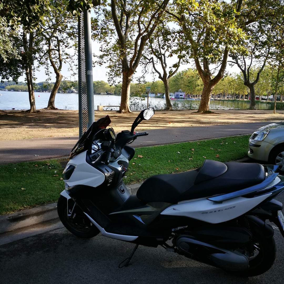Mañana soleada y agradable, una vuelta alrededor del lago de banyoles, y ya puestos almorzar un poco antes de entrar al taller Kymco.