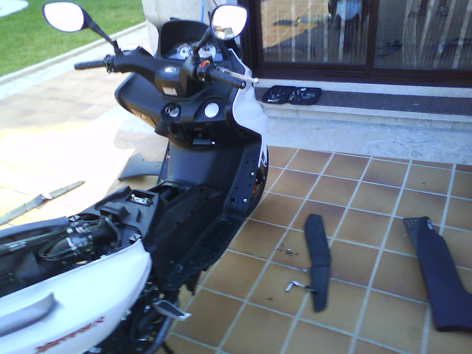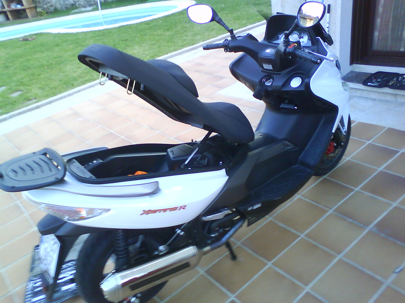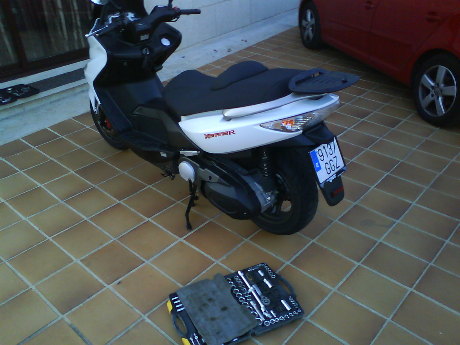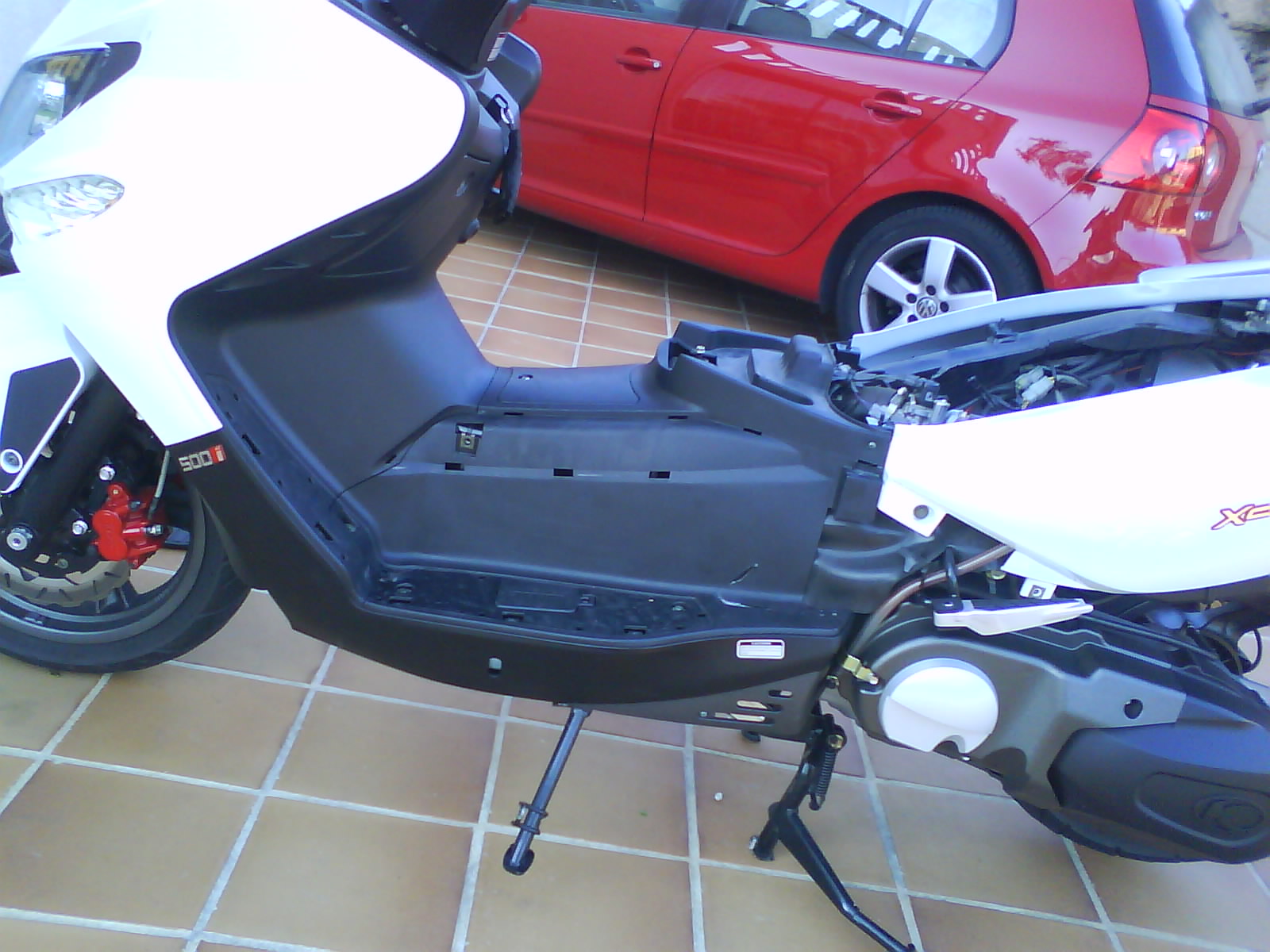 Hola amigos: llevo una temporada apreciando que falta anticongelante y que cada 2500Km tengo que rellenar el vaso de expansion y no sabia si lo consumia o lo perdia o que se yo y hoy he visto una mancha debajo de la moto y decidi investigar. Se veia mojado tambien en el papel anticalorico de deposito pero no se veia de donde venia la fuga asi que manos a la obra, hay que operar.