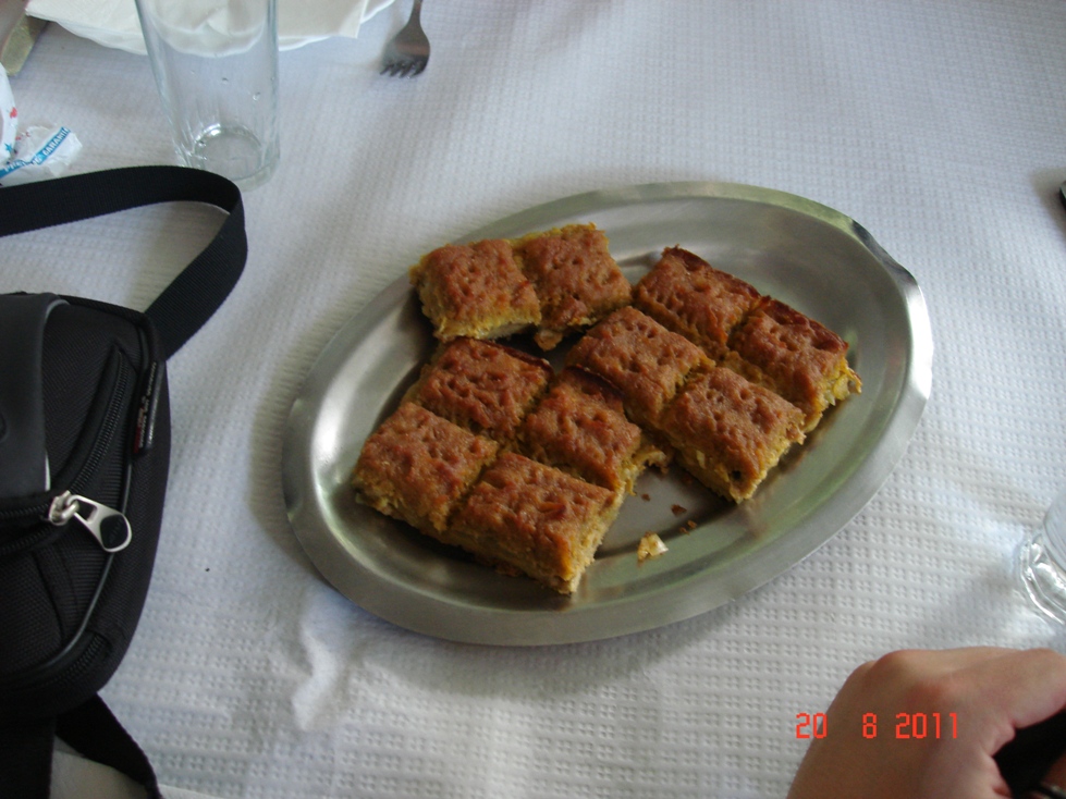 De primero empanada de maiz rellena de berberechos......