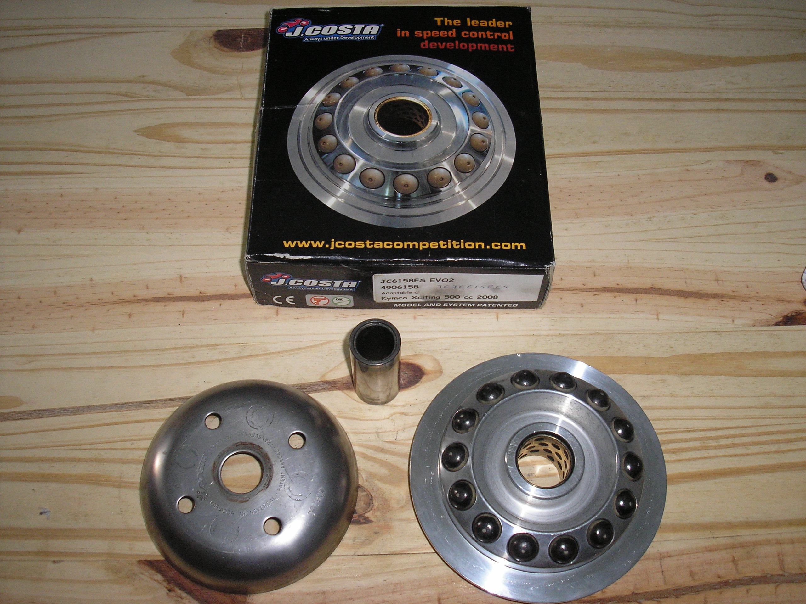 Variador j.costa : Valido para la XC 500R y Xc 500i ABS. Lleva masas de 25,5 grm. No he tenido en cuenta los Kms que he hecho con este variador, calculo que unos 3500 Kms y que aguantarían sin problemas otros 3000 Kms por lo menos. Los "balines" tienen en la punta, justo en el centro, un pequeño orificio ciego que supongo que es para verificar el desgaste de los mismo. Si este es el motivo por el que tienen esos orificios, a éstos aún les queda como 1mm.