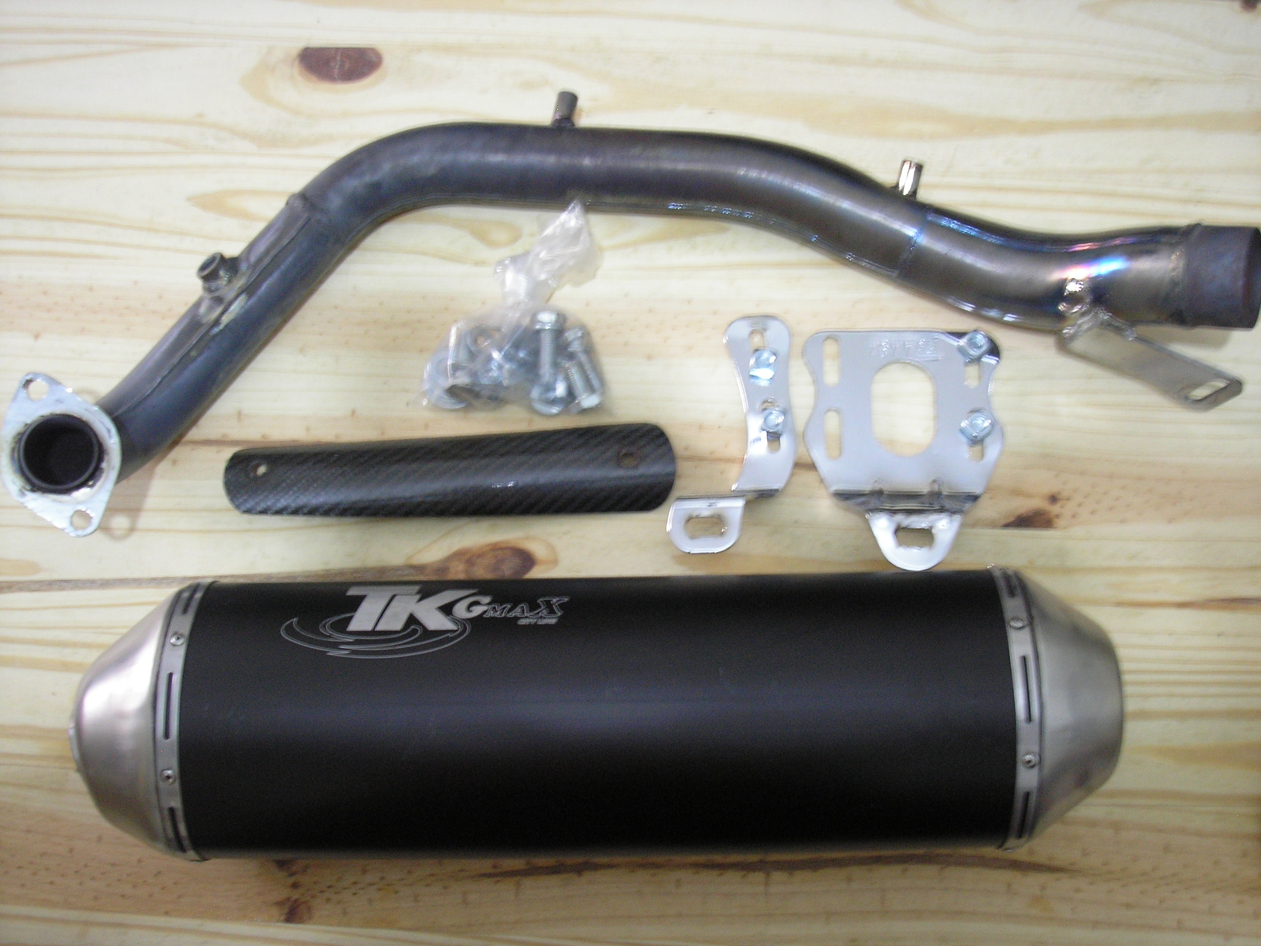 Escape con colector Turbokit: Tabién para la 500R y 500 abs, aunque creo que taponando el orificio del sensor de la sonda lambda, también se puede poner en la 500 carburada. Al igual que con el j.costa, tampoco sé cuantos Kms ha sido usado, calculo que unos 4000 kms. Nunca dió problemas de remaches ni de ningún tipo. Como puede observarse en la foto, uno de los tetones donde va atornillado el protector del colector está un poco hundido, aunque esto no se ve una vez puesto el protector, y tampoco afecta a su funcionamiento.