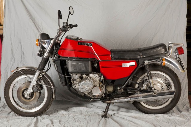 A mediados de los años 70, La Shifty tenía un nombre que le venía que ni pintado. Había sido diseñada y construida por un ingeniero italiano, Ugo Grandis, a su vuelta de Sudáfrica, donde había trabajado para Chrysler. En un pueblo cercano a Pádova se dedicó a ensamblar partes de moto y un motor de 127 sobre un chasis tubular, y logró construir entre 1977 y 1982 unas 70 unidades de la Shifty, lo que no está nada mal. El chasis lo construyó para aprovechar los anclajes originales del cuatro cilindros, sujeto con gomas. Para poder encerrar convenientemente el propulsor y al tiempo sujetar la parte delantera y la trasera, la parte superior izquierda era desmontable. Aunque hay variaciones en las motos construidas dependiendo del momento en que se ensamblaron y la disponibilidad de componentes, la parte delantera era bastante semejante a la de la Benelli 906, mientras que la trasera se correspondía con la de la Laverda SF 750.
