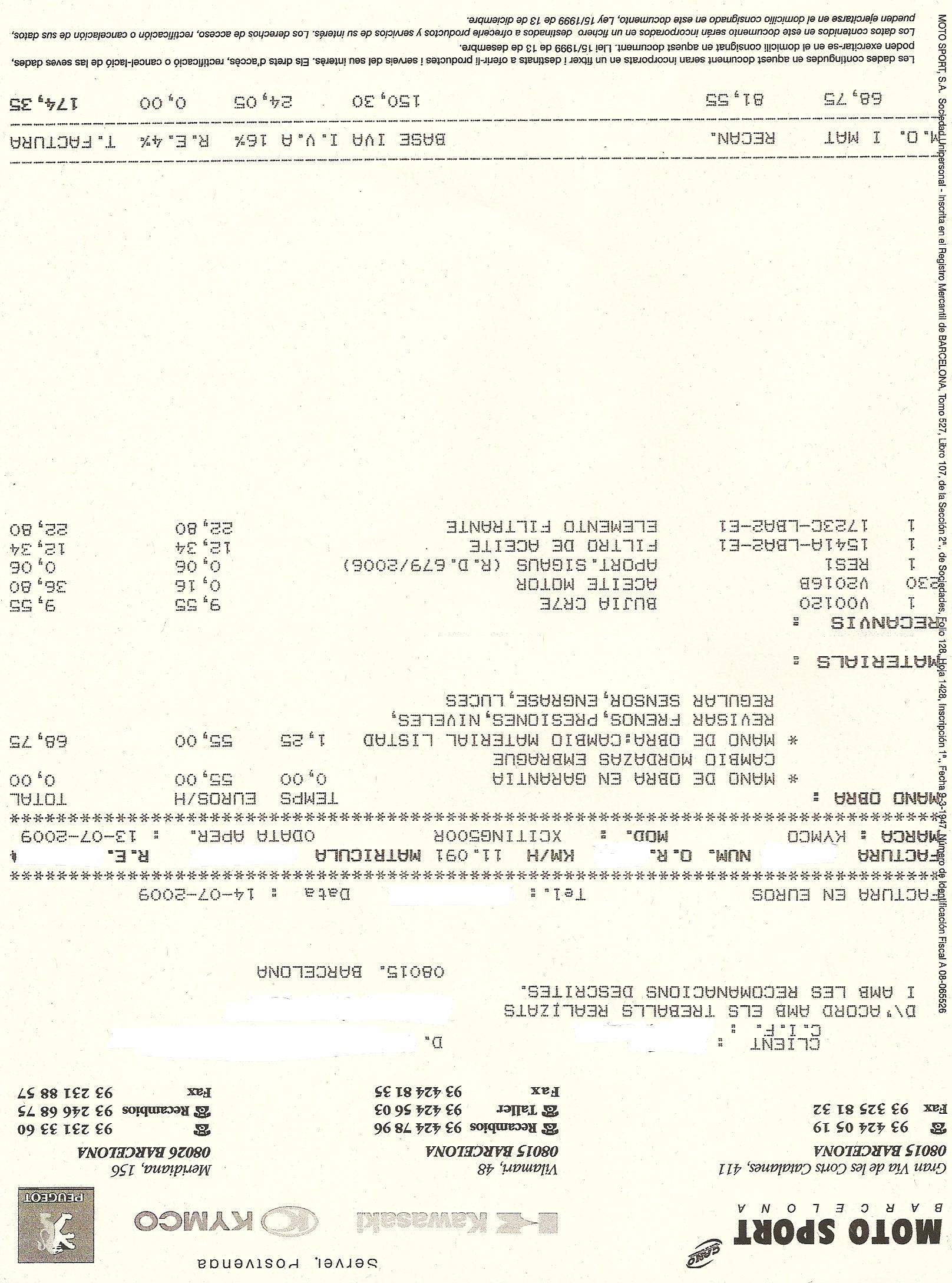 Mensaje Re: Factura Revisión A Los 11000 Km XCITING 500