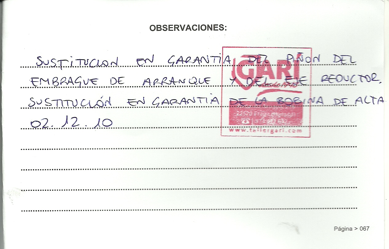 Esto es lo que el taller anoto en el librillo de revisiones.
