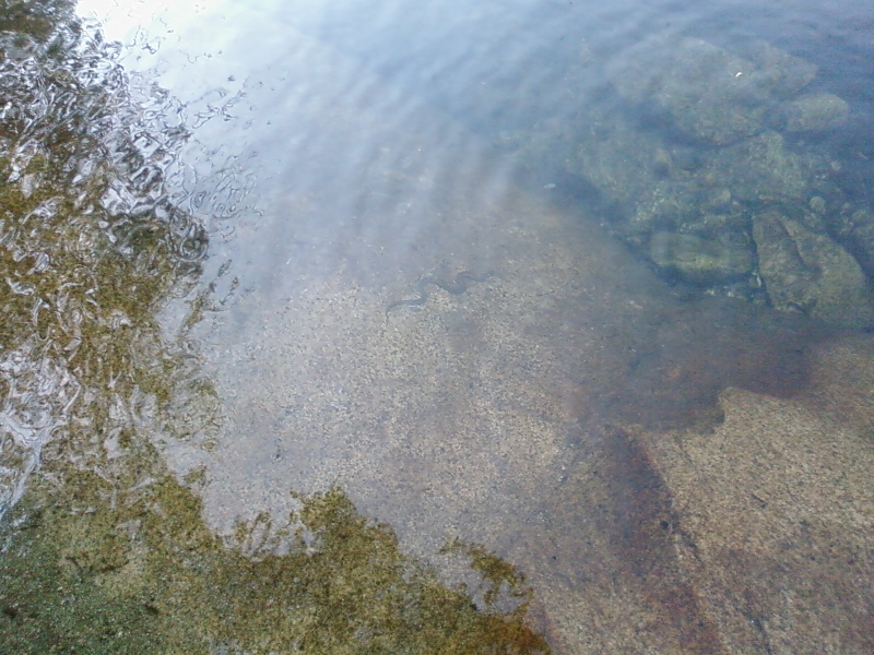 Maravillado y lleno de Naturaleza prosigo la ascensión observando la fauna del lugar, muy accesible ya que están acostumbrados los animales a los caminantes y no se asustan con facilidad. Ví algún corzo, cabra montés e innumerables aves, así como un reptil acuático que espero se distinga en la foto.