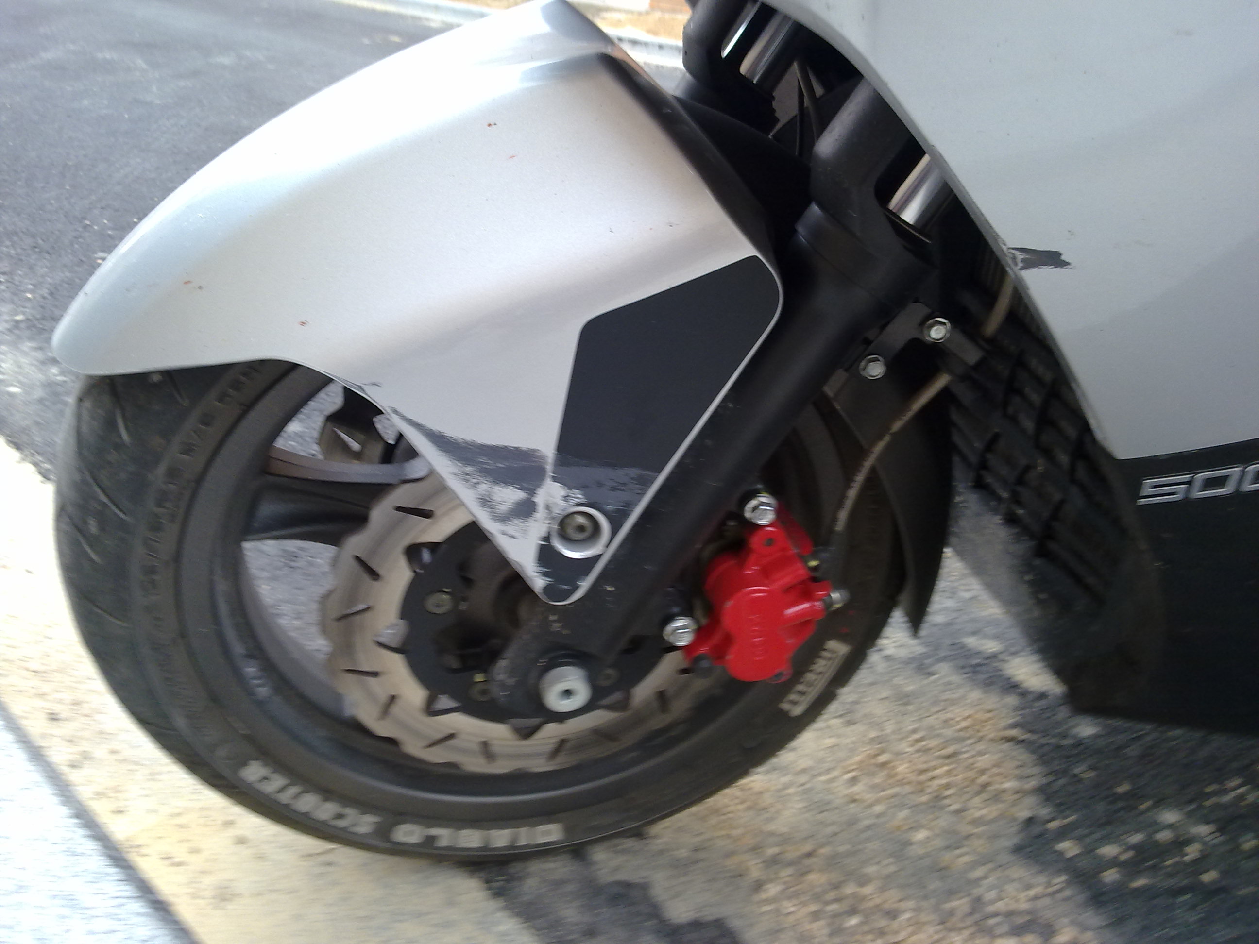 Yo tengo una prácticamente igual que la tuya, a mi me lo hizo otra scooter tirando hacia atrás en un semáforo con el escape, en un principio pensaba que no me había hecho nada porque el roce fue muy débil, pero cuando después llegue a casa y lo vi me acorde de toda su familia. Como dice FranciXCo poco a poco te olvidas, pero cuando los ves de cerca por ejemplo cuando limpias la moto, se te revuelven las tripas.